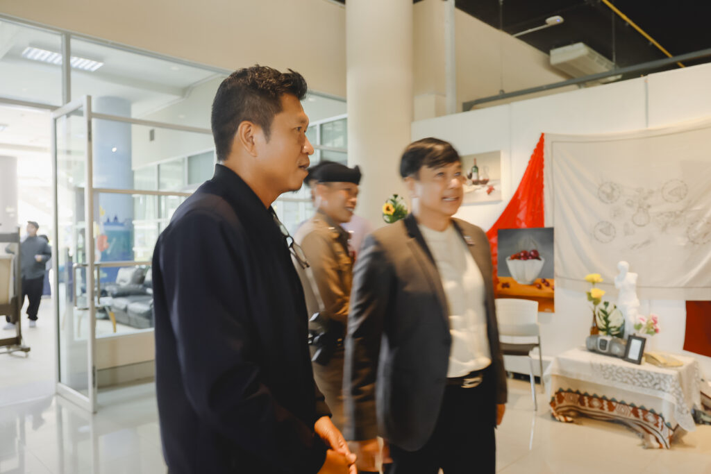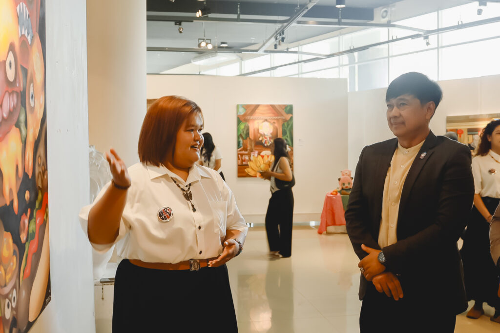 นิทรรศการศิลปะ “จรัสศิลป์” วันอังคารที่ 30 กันยายน 2568 ผู้ช่วยศาสตราจารย์ธาตรี คำแหง คณบดีคณะมนุษยศาสตร์และสังคมศาสตร์ มหาวิทยาลัยราชภัฏสุราษฎร์ธานี เป็นประธานในพิธีเปิดโครงการ นิทรรศการศิลปะ “จรัสศิลป์”นิทรรศการนี้รวบรวมผลงานเทคนิคจิตรกรรมสร้างสรรค์ของนักศึกษาจากสาขาวิชาจิตรกรรม คณะมนุษยศาสตร์และสังคมศาสตร์ มหาวิทยาลัยราชภัฏสุราษฎร์ธานี เพื่อเป็นเวทีในการแสดงศักยภาพของศิลปินรุ่นใหม่และส่งเสริมกระบวนการเรียนรู้การจัดนิทรรศการอย่างเป็นรูปธรรม สถานที่จัดงานหอศิลป์ศรีวิชัย อาคารเฉลิมพระเกียรติ ๘๔ พรรษา มหาวิทยาลัยราชภัฏสุราษฎร์ธานี