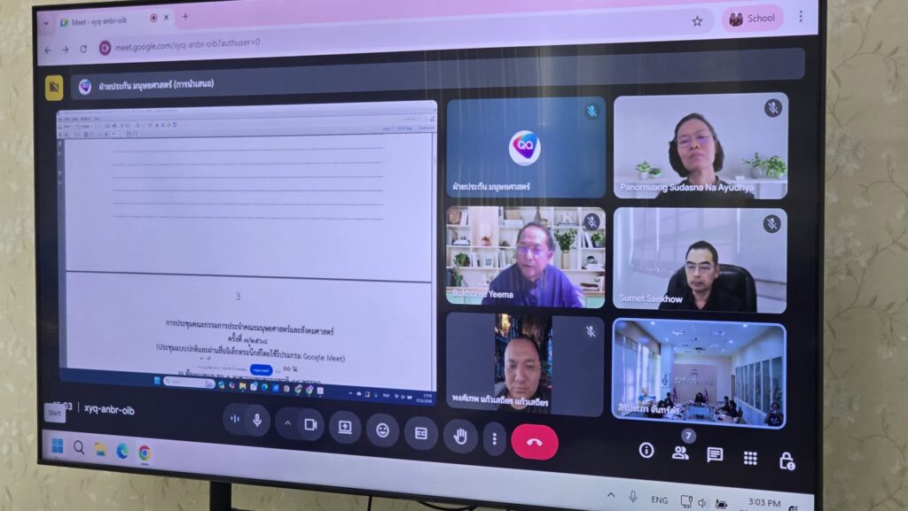 ประชุมคณะกรรมการประจำคณะมนุษยศาสตร์และสังคมศาสตร์ครั้งที่ 8/2568(การประชุมแบบปกติและผ่านสื่ออิเล็กทรอนิกส์โดยใช้โปรแกรม Google Meet)วันที่ 7 พฤศจิกายน 2568 เวลา 15.00 น. ณ ห้องอินทนิล ชั้น 1 อาคารเฉลิมพระเกียรติ 84 พรรษา คณะมนุษยศาสตร์และสังคมศาสตร์ มหาวิทยาลัยราชภัฏสุราษฎร์ธานี