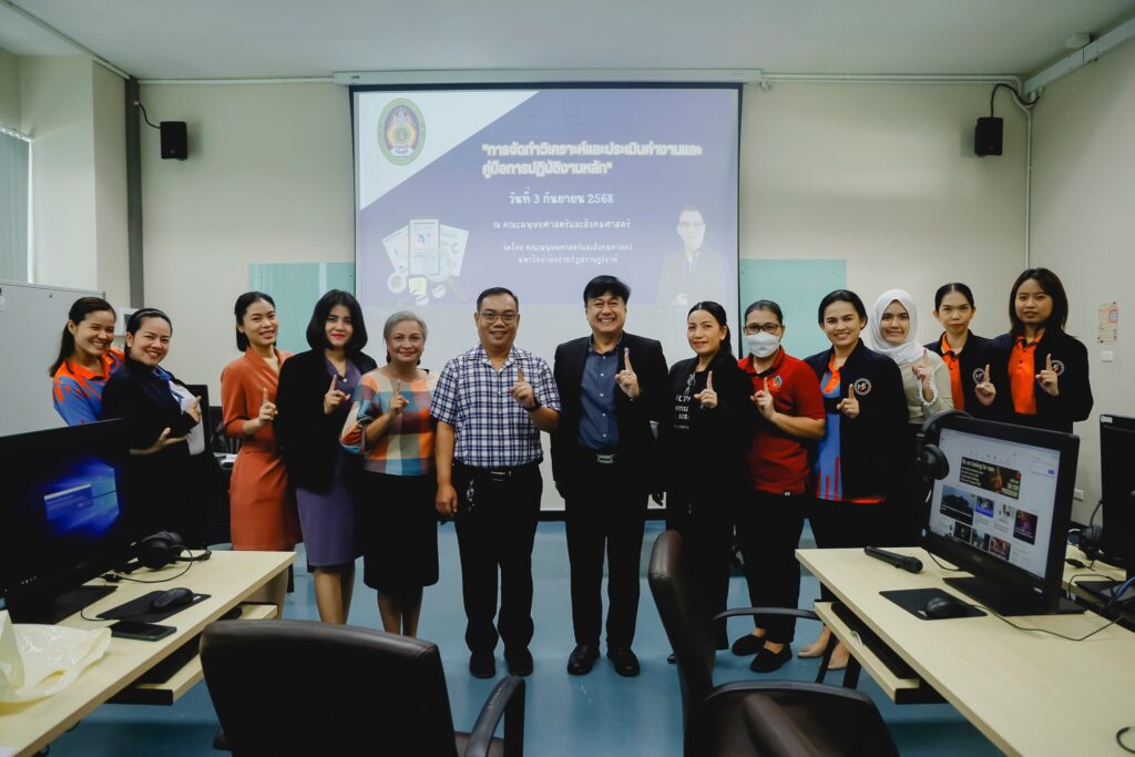 ณ คณะมนุษยศาสตร์และสังคมศาสตร์ มหาวิทยาลัยราชภัฏสุราษฎร์ธานีบุคลากรสายสนับสนุนวิชาการ จำนวน 17 คนพิธีเปิดโครงการ เวลา 08.45–09.00 น. โดยผู้ช่วยศาสตราจารย์ธาตรี คำแหงคณบดีคณะมนุษยศาสตร์และสังคมศาสตร์มหาวิทยาลัยราชภัฏสุราษฎร์ธานี👨‍🏫 การอบรมให้ความรู้หัวข้อ “การจัดทำคู่มือปฏิบัติงานหลัก เทคนิคการเขียนคู่มือปฏิบัติงาน และการเขียนแบบขอรับการประเมินเพื่อแต่งตั้งให้ดำรงตำแหน่งสูงขึ้น”โดย คุณอรุณ หนูขาวเจ้าหน้าที่บริหารงานทั่วไป ระดับชำนาญการ